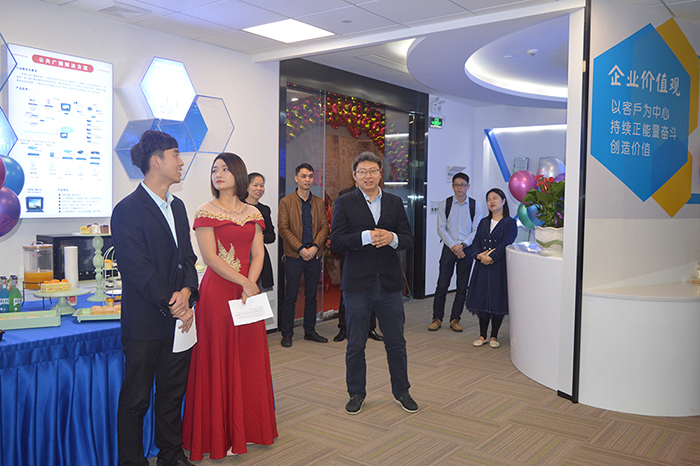 揭幕儀式上,劉文斌先生首先代表公司向蒞臨喬遷儀式的各位來賓表示感謝!劉文斌先生在致辭中表示,公司在廣大合作伙伴和客戶朋友們的大力支持下,不斷實現(xiàn)新的突破與跨越,取得了長足發(fā)展和顯著成績!為改善辦公條件和環(huán)境,樹立企業(yè)品牌形象,提高員工幸福指數(shù),公司總部決定遷至廣州綠地中央廣場E棟504-505,工廠遷至廣州明峰科技創(chuàng)新園F棟6樓。